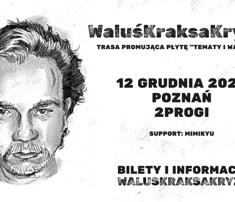 WaluśKraksaKryzys to jeden z najciekawszych wykonawców polskiej sceny alternatywnej, ostatnia nadzieja polskiego rocka, poeta, członek ZPAV, miły i wciąż młody człowiek Latem 2025 widziany wielokrotnie w podejrzanym towarzystwie Dawida P., Artura R. czy też Borysa P. Jednak najważniejsza informacja na jego temat jest taka, że nakładem Mystic Production wydaje nową płytę pt. “𝙏𝙚𝙢𝙖𝙩𝙮 𝙞 𝙬𝙖𝙧𝙞𝙖𝙘𝙟𝙚”. W […]