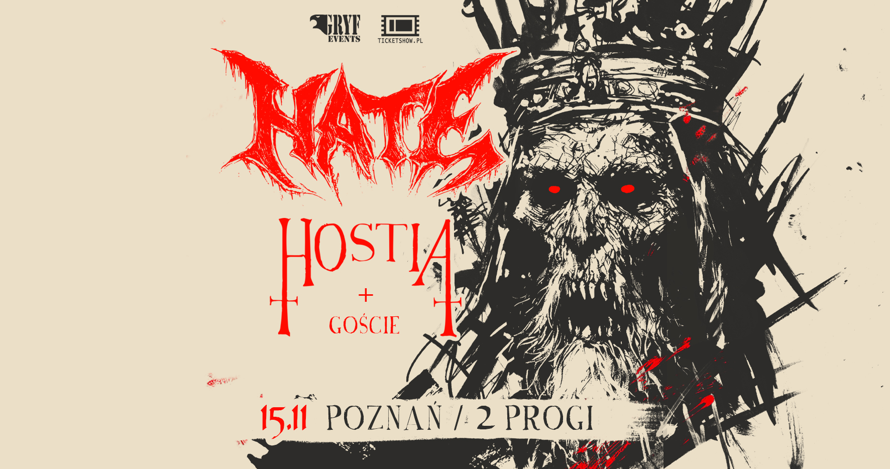 Ekipa Gryf Events ma kolejny cios. Tym razem jest to trasa absolutnych gigantów metalu. Zespół Hate oraz Hostia zapraszają na wspaniałą ucztę muzyczną, podczas 6 niezapomnianych sztuk w Polsce, gdzie prezentowane będą nowe albumy.